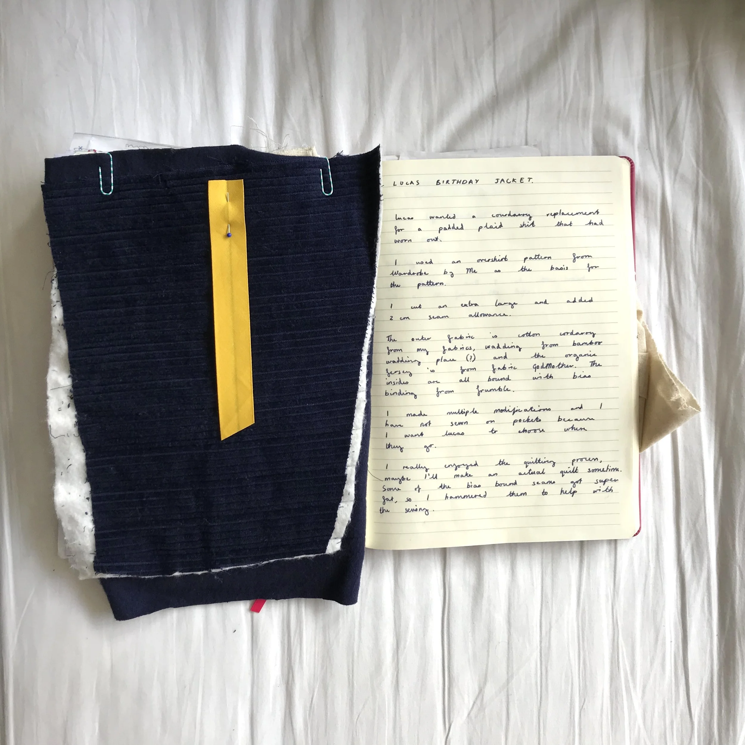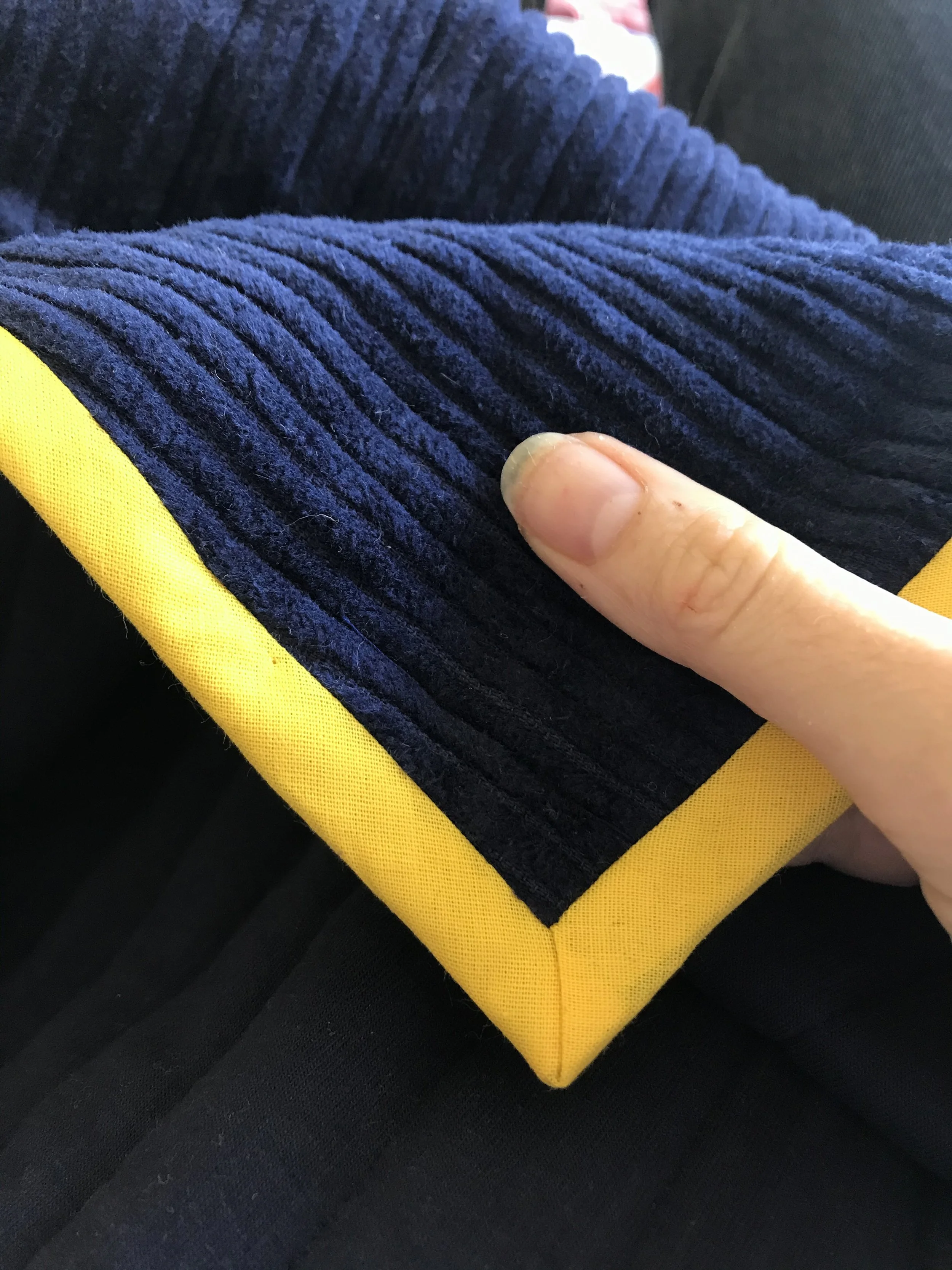 The first quilted jacket I made. Somewhere between a shirt and a jacket really. Wide wale corduroy, bamboo jersey interior, bamboo wadding. Yellow bias binding inside. This jacket was a real labour of love, multiple mock ups, endless time quilting and binding the edges of each piece. I really like this garment, not only in look but in fit and comfort. It was my first attempt at quilting pattern pieces. It led me down an avenue Iād never considered.
